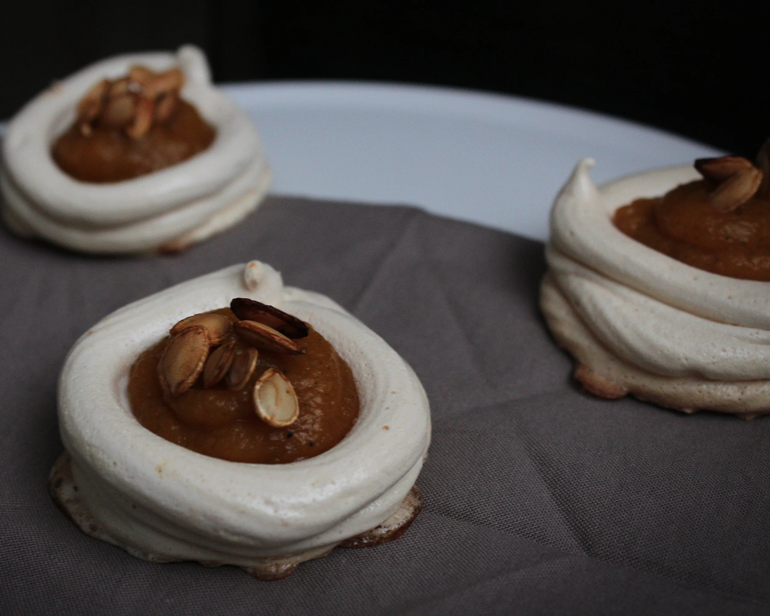 Maple Meringues with Butternut Squash Puree & Coffee Roasted Seeds